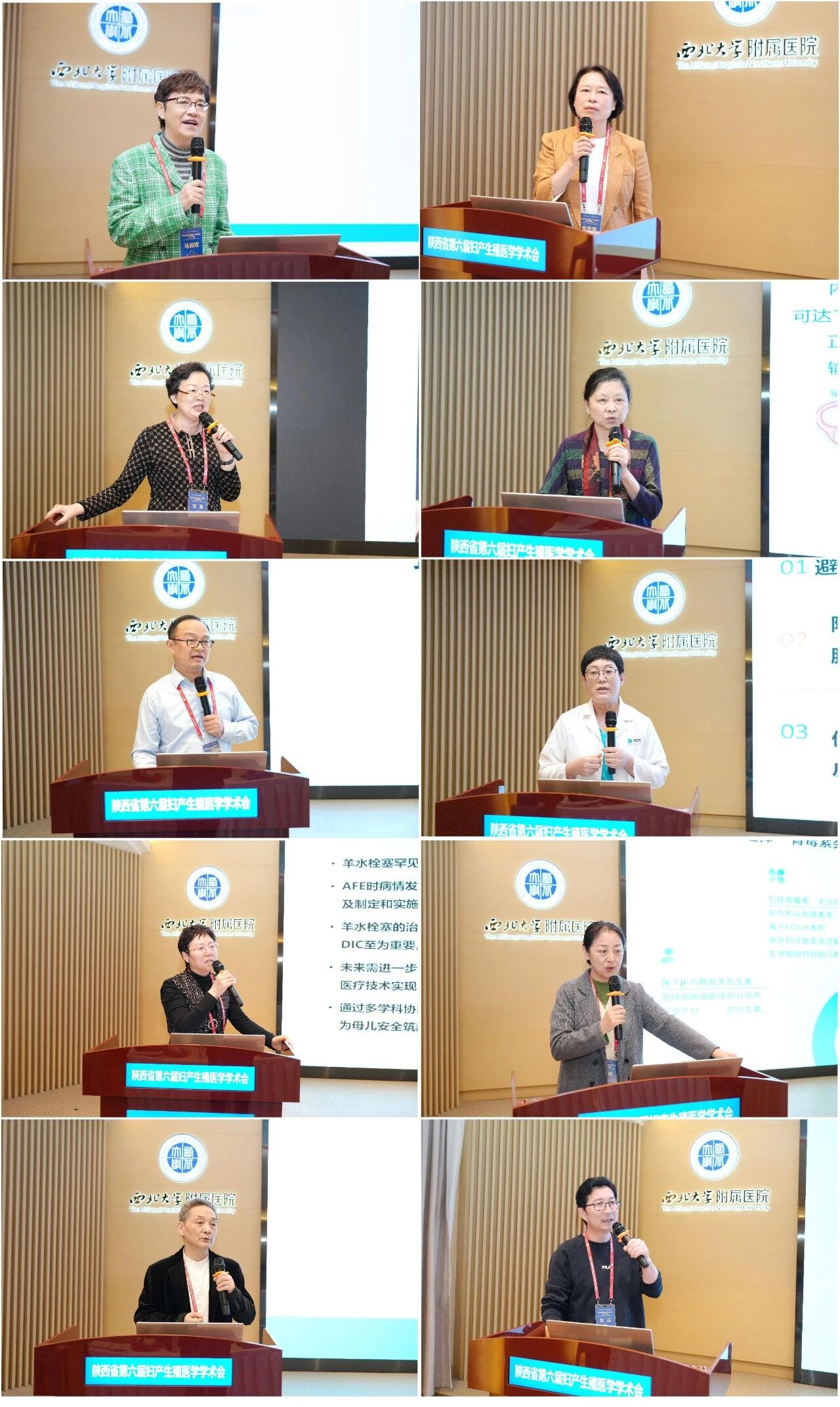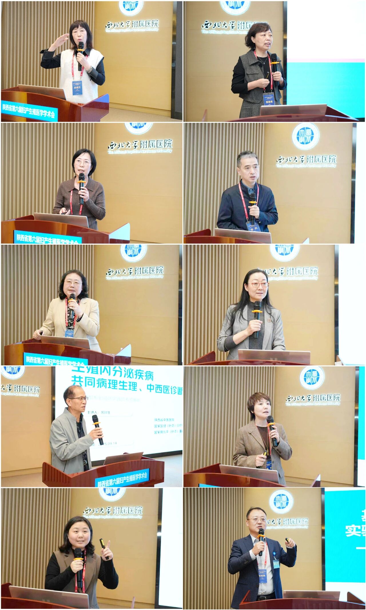 授课专家从左到右依次为:吕淑兰/西安交通大学第一附属医院—《多囊卵巢综合症的鉴别诊断》,周寒鹰/西北妇女儿童医院—《女性性激素解读》,赵静/西安市第四人民医院—《女性生育力影响因素及守护策略》,张洲/西北妇女儿童医院—《男科不育的诊疗新进展国际共识解读》,黄艳红/国际医学中心—《女性肿瘤患者生育力保护及保存的进展》,倪仁敏/昆明安琪儿妇产医院—《复发性流产的诊治》,苏同生/陕西省中医医院—《生殖内分泌疾病的共同生理病理、中医西医诊断及治疗方案》,孟彬/西北大学附属安琪儿妇产医院—《高效促排、尽快抱婴--医保政策下的促排策略优化》,刘珊/木棉花医疗集团—《狼疮抗凝物检测的解读》,赵皖秋/西北大学附属安琪儿妇产医院—《基于数字化的胚胎实验室全流程质量管理》