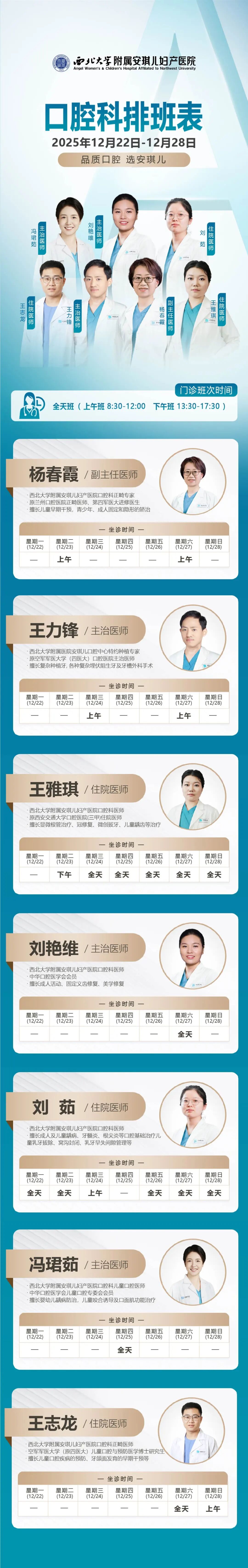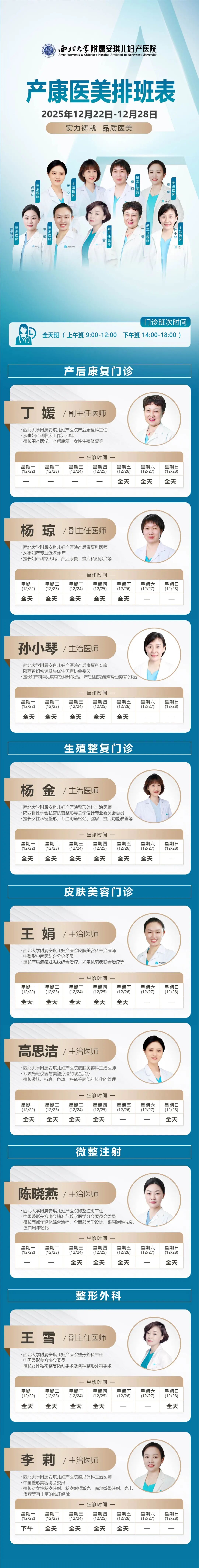 西安安琪儿妇产医院(2月2日至2月8日)专家坐诊时间表