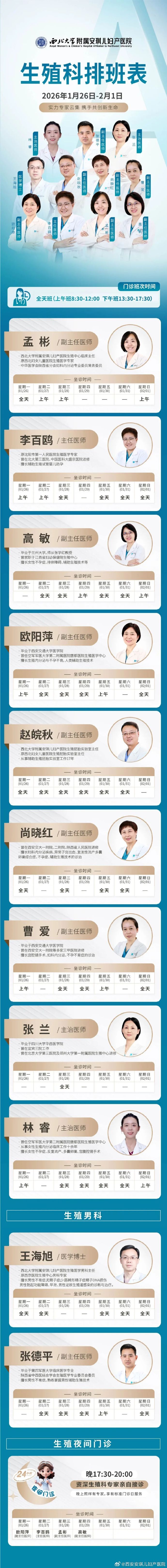 西安安琪儿妇产医院(1月26日至2月1日)专家坐诊时间表
