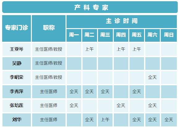 西安安琪儿妇产医院(11月03日至11月09日)专家坐诊时间表
