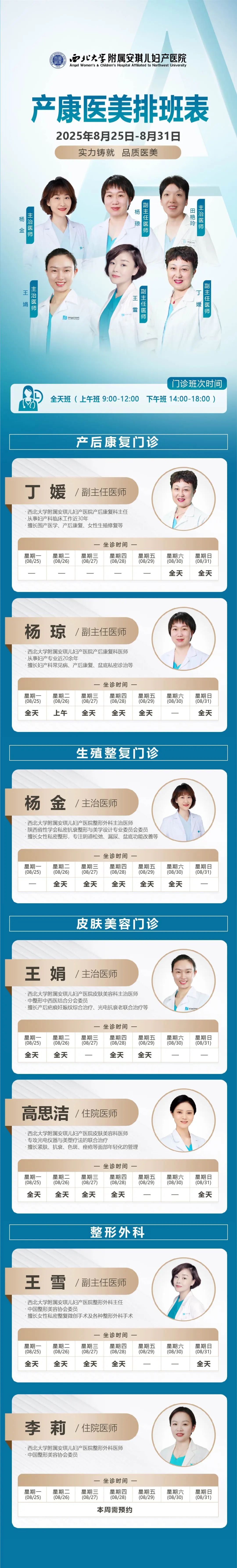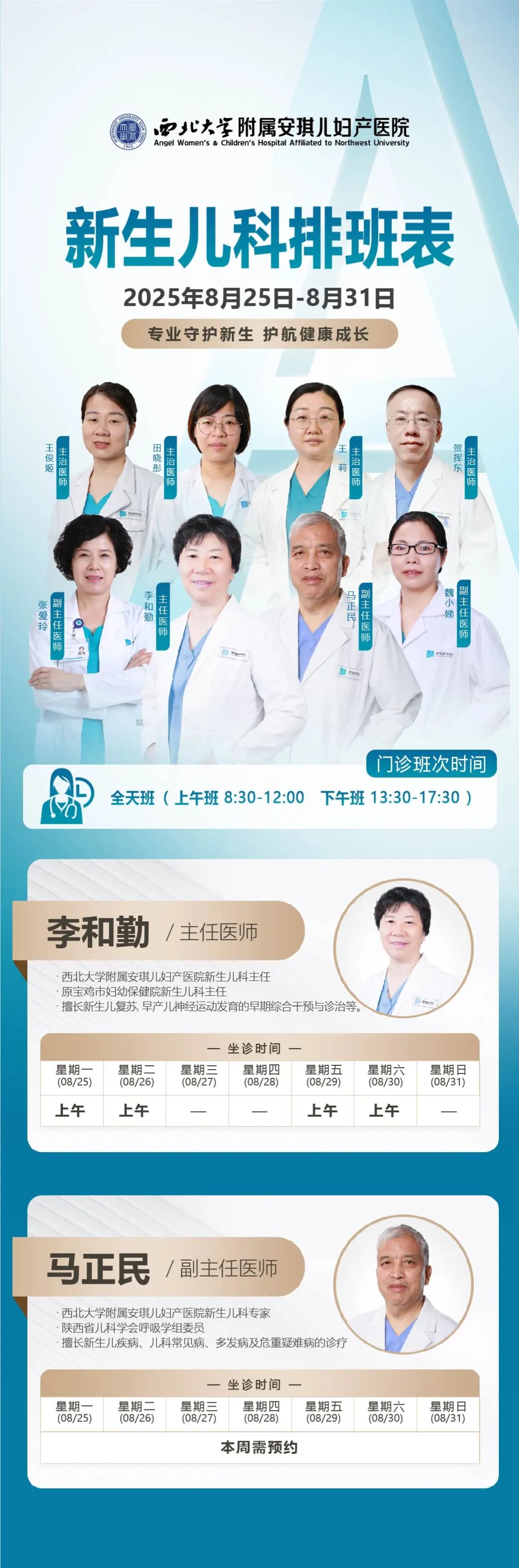 西安安琪儿妇产医院(8月25日至8月31日)专家坐诊时间表