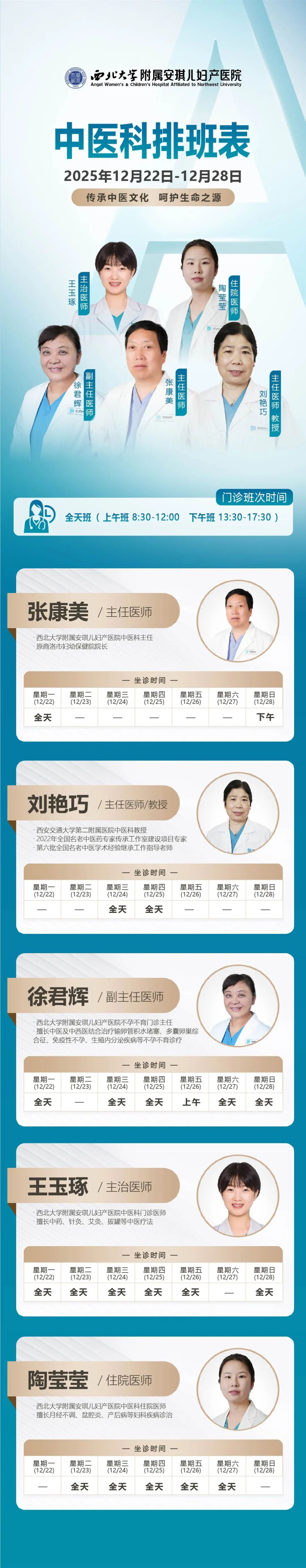 西安安琪儿妇产医院(2月2日至2月8日)专家坐诊时间表