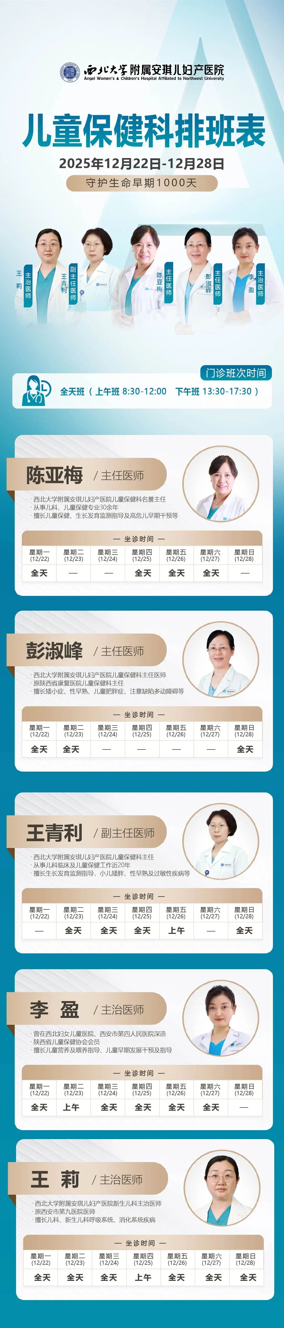 西安安琪儿妇产医院(3月16日至3月22日)专家坐诊时间表