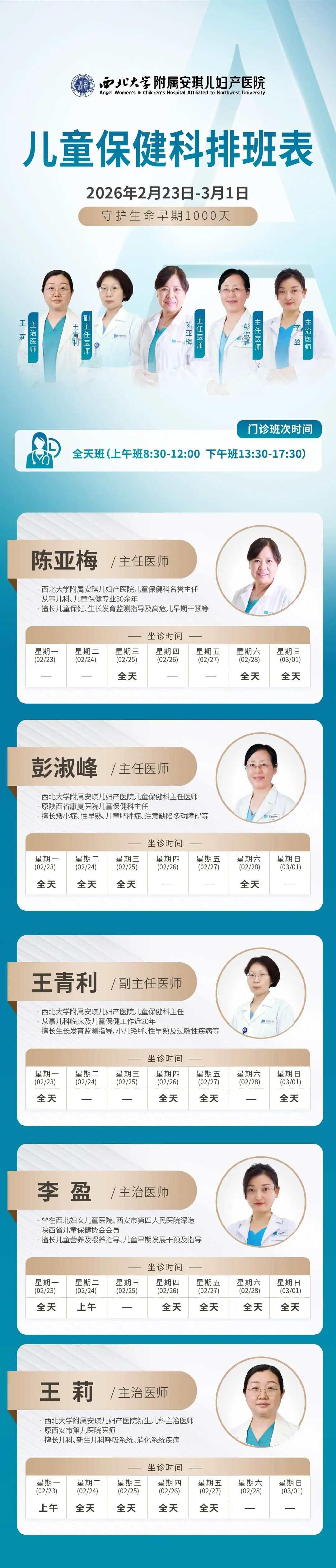 西安安琪儿妇产医院(2月23日至3月1日)专家坐诊时间表